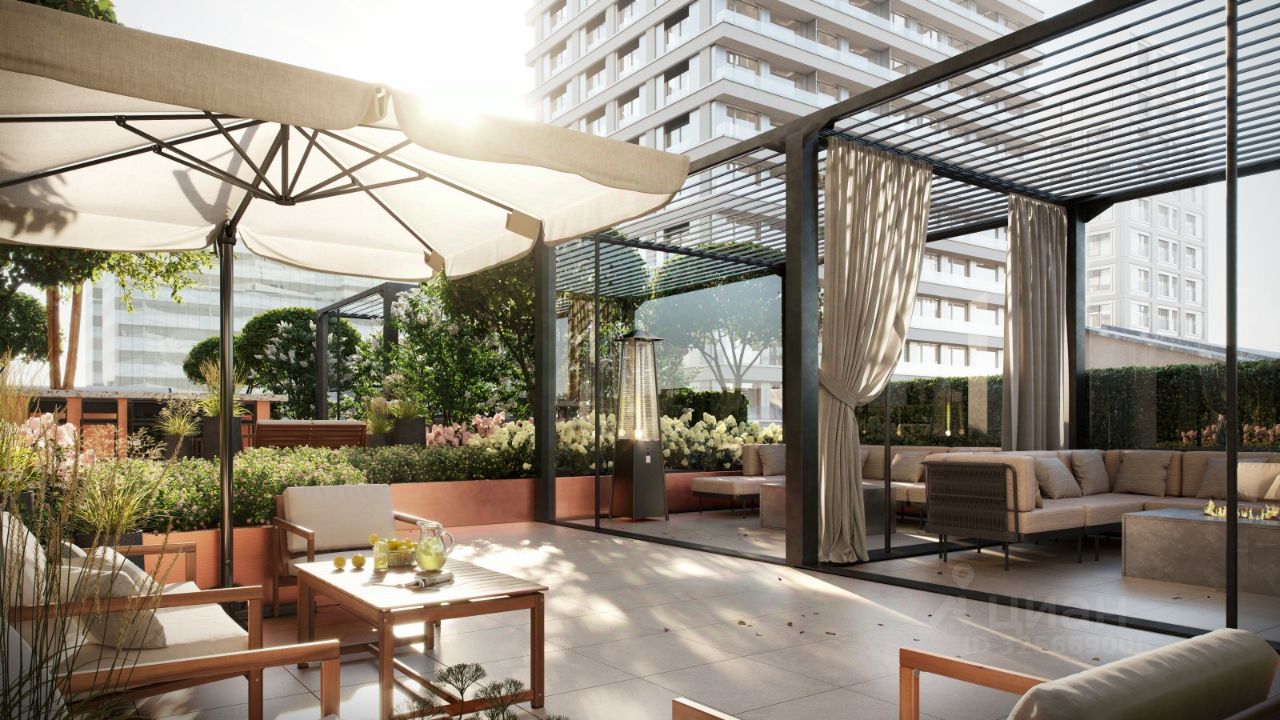 На уровне четвёртого этажа устроим главное открытое пространство для отдыха на свежем воздухе — только для жителей ''Гоголя 21''. В центре террасы — большая зона с летней кухней: гриль, барная стойка, общий стол и уютная лаунж-зона, где можно собраться компанией. В событийной зоне поставим беседку и большой стол с азиатским грилем — место для ужинов и летних вечеринок. Пространство примыкает к залу для праздников, поэтому летом здесь можно устраивать большие соседские встречи.