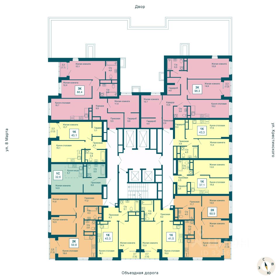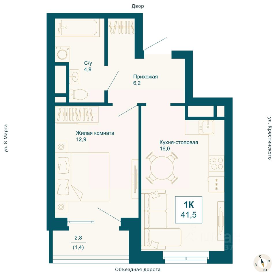 Общая площадь41,5 м2