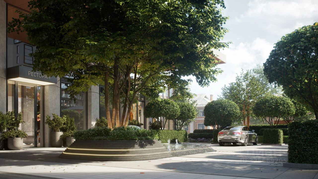 Ландшафтные решения в доме на Гоголя, 21 придумали не мы, а Екатеринбург. Главный здесь — гранит. Серый, фактурный, незыблемый, как сам Урал. Он часто встречается на центральных улицах, а в нашем доме используется как материал для мощения и декорирования фонтанов.