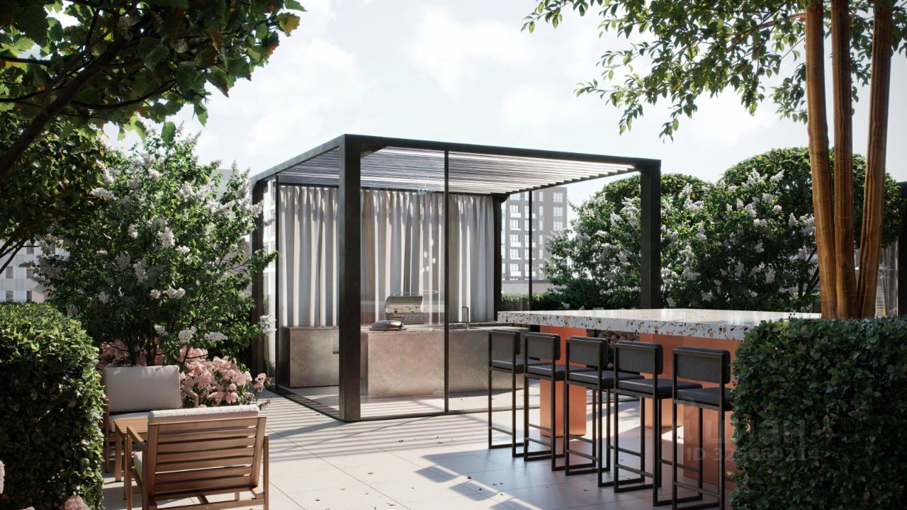 На уровне четвёртого этажа устроим главное открытое пространство для отдыха на свежем воздухе — только для жителей ''Гоголя 21''. В центре террасы — большая зона с летней кухней: гриль, барная стойка, общий стол и уютная лаунж-зона, где можно собраться компанией. В событийной зоне поставим беседку и большой стол с азиатским грилем — место для ужинов и летних вечеринок. Пространство примыкает к залу для праздников, поэтому летом здесь можно устраивать большие соседские встречи.