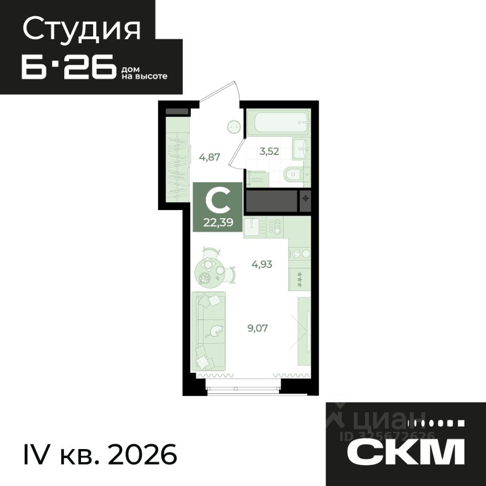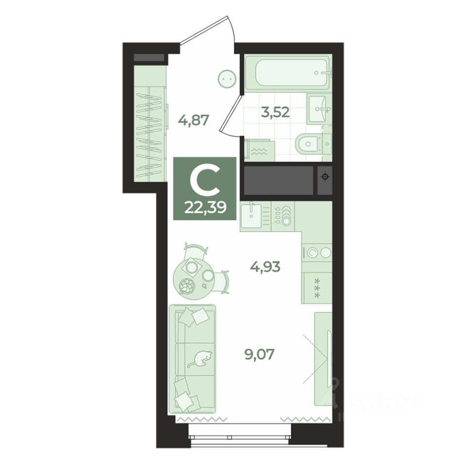 Общая площадь22,39 м2