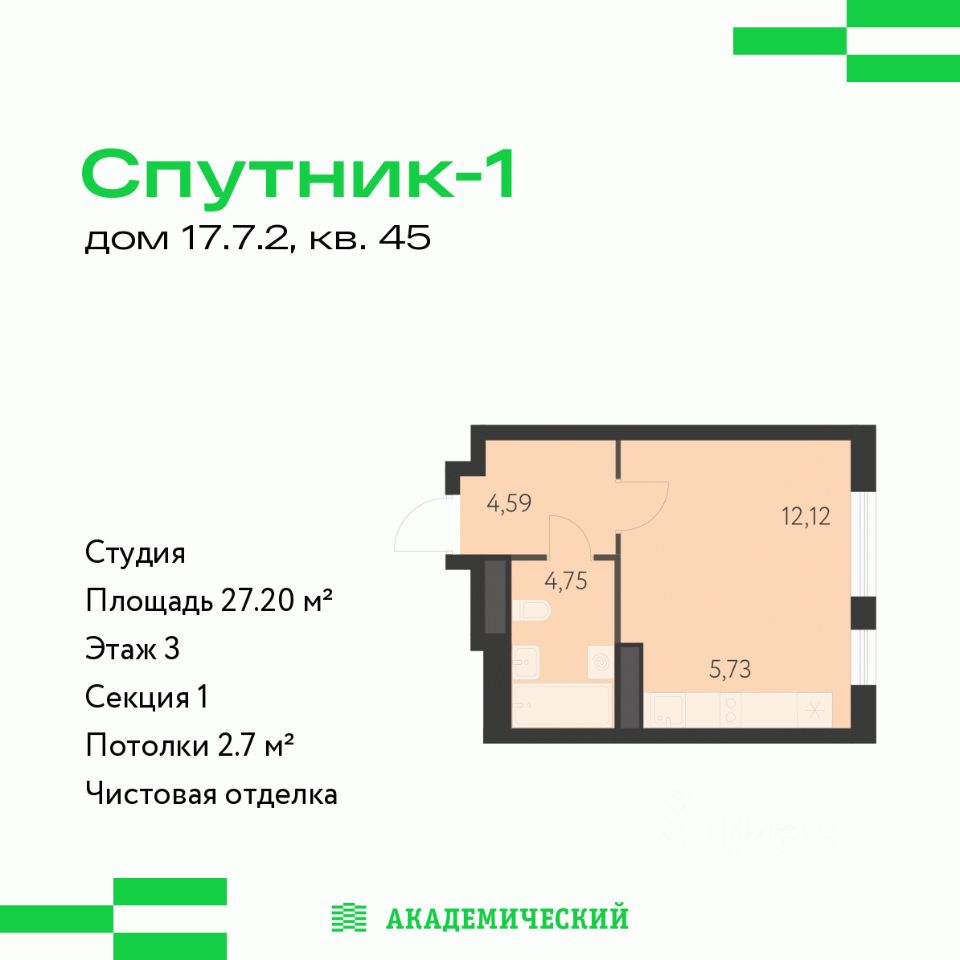 продам 1-к квартира5 640 000 ₽