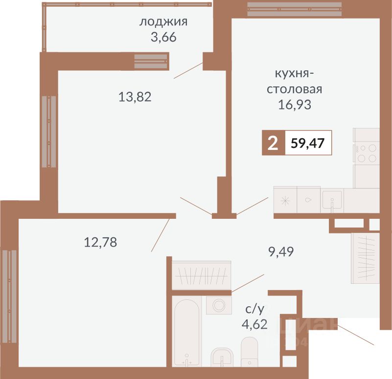 Общая площадь59,47 м2