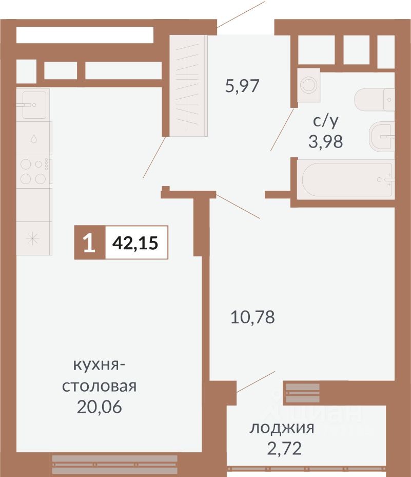 Общая площадь42,15 м2