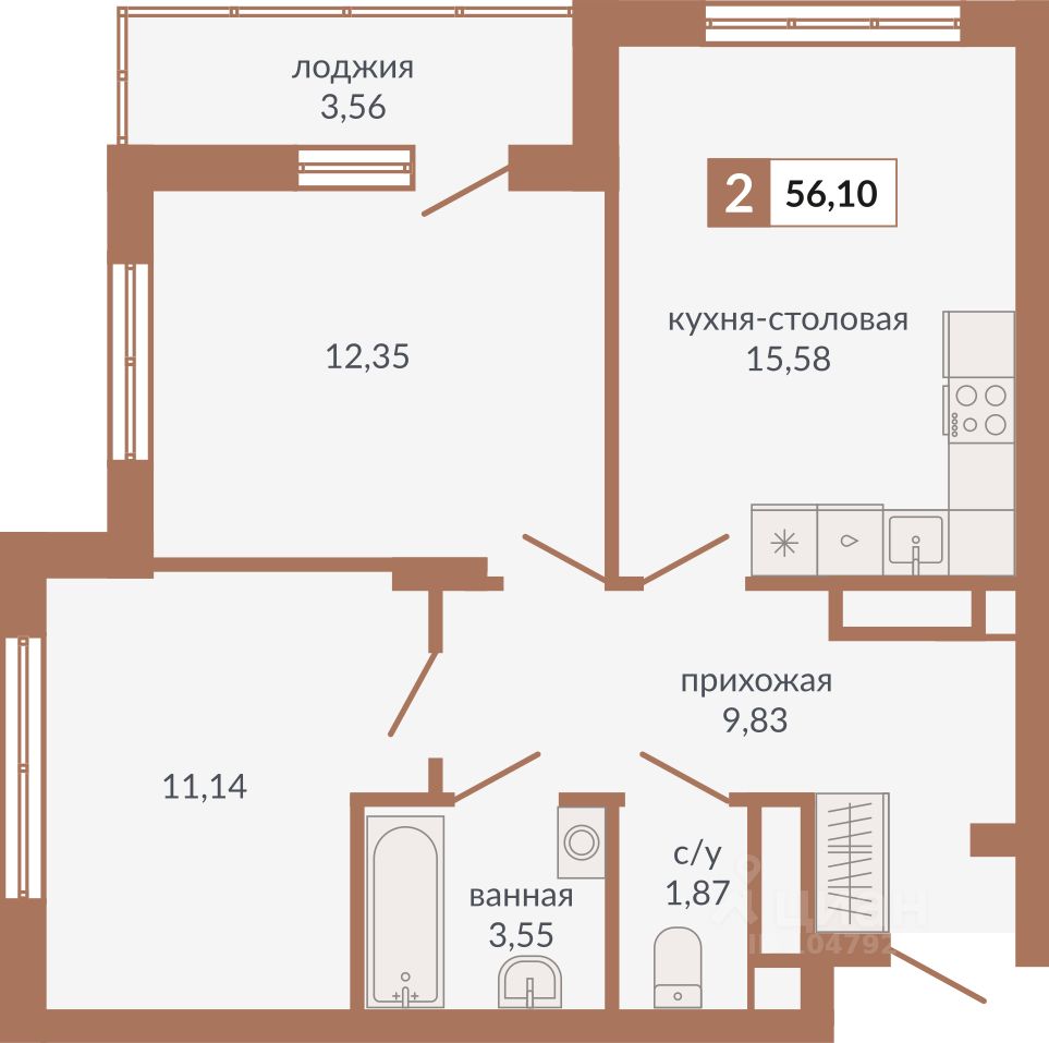 Общая площадь56,1 м2