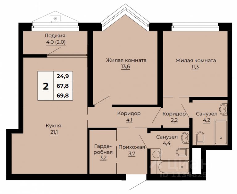 Продаётся 2-комнатная квартира в строящемся доме (Дом 2), срок сдачи: II-кв. 2026, общей площадью 69.8 кв.м., на 13 этаже. Ольховский парк расположился практически в центре города, среди зелени на берегу реки Ольховка.