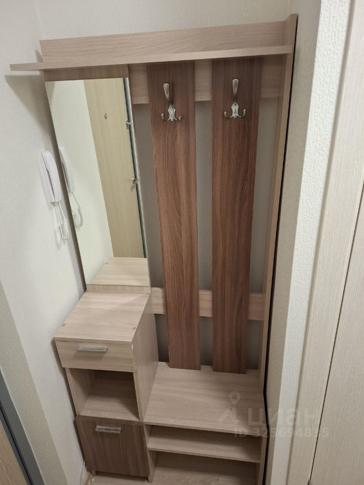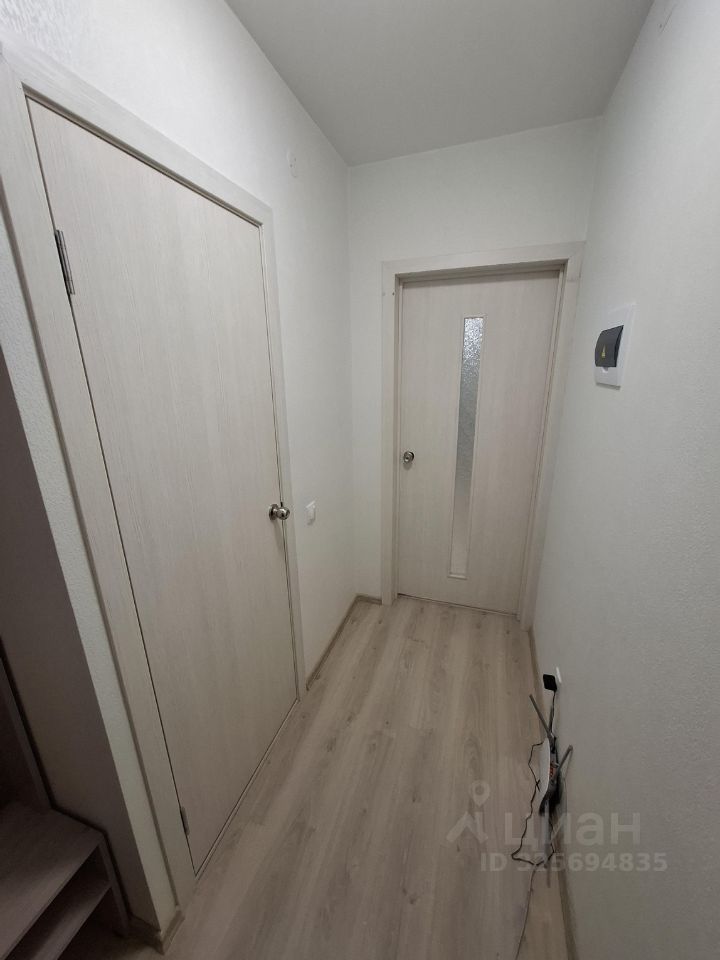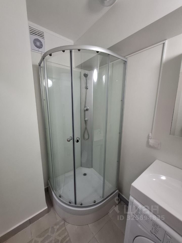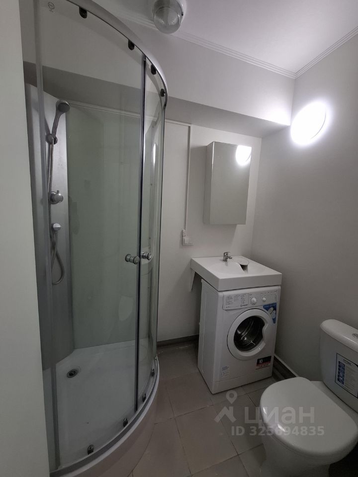 В комнате есть необходимая мебель: шкафы и диван-кровать. Кухня оснащена холодильником, мультиваркой и плитой. Санузел совмещенный, с душевой кабиной и стиральной машиной.