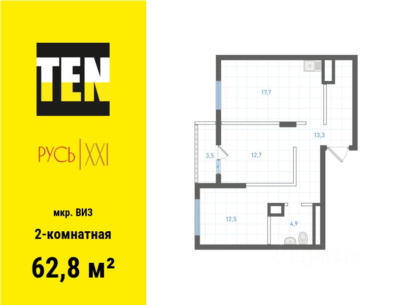 Квартира бизнес-класса в ЖК ''Русь XXI'' на ВИЗе от застройщика TEN девелопмент! Ключи во 2 квартале 2027 года. ЖК ''Русь XXI'' - это 10-секционный дом высотой от 7 до 18 этажей, из окон которого открываются вдохновляющие виды на Верх-Исетский пруд и огни мегаполиса. Двор-сад Двор закрыт от машин и посторонних, при этом на территории всегда много света и пространства благодаря разнице высот дома. Богатое озеленение, разнообразная геопластика, детские игровые и спортивная площадки, зоны для отдыха - все, чтобы каждому жителю было приятно проводить здесь время. Контроль доступа, видеонаблюдение и круглосуточная охрана обеспечат безопасность для себя и близких. Эстетика и комфорт Входные группы прозрачные и сквозные, расположены на уровне тротуара, чтобы было удобно завозить коляску или велосипед. Холлы оформлены в едином стиле - светлые пространства с отделкой под дерево и камень. Для удобства каждого жителя здесь есть мягкие и коворкинг-зоны, колясочная и лапомойка. Для автолюбителей - подземный паркинг. Настоящая свобода Большая площадь и высота потолка 3 м сделает квартиру визуально еще просторнее. При таких размерах гораздо проще подобрать оптимальный вариант дизайна интерьера для любой семьи. Отделка под чистовую. В санузле — монолитный потолок, на полу — гидроизоляция и стяжка, стены оштукатурены. В одном санузле установлены унитаз и раковина. В остальных помещениях потолок — монолит, на полу — стяжка, стены оштукатурены. Выгодные условия оплаты: - акционные предложения - ипотека от ведущих банков, семейная ипотека - рассрочка от застройщика - трейд-ин Звоните или оставляйте заявку, чтобы узнать больше и забронировать квартиру!