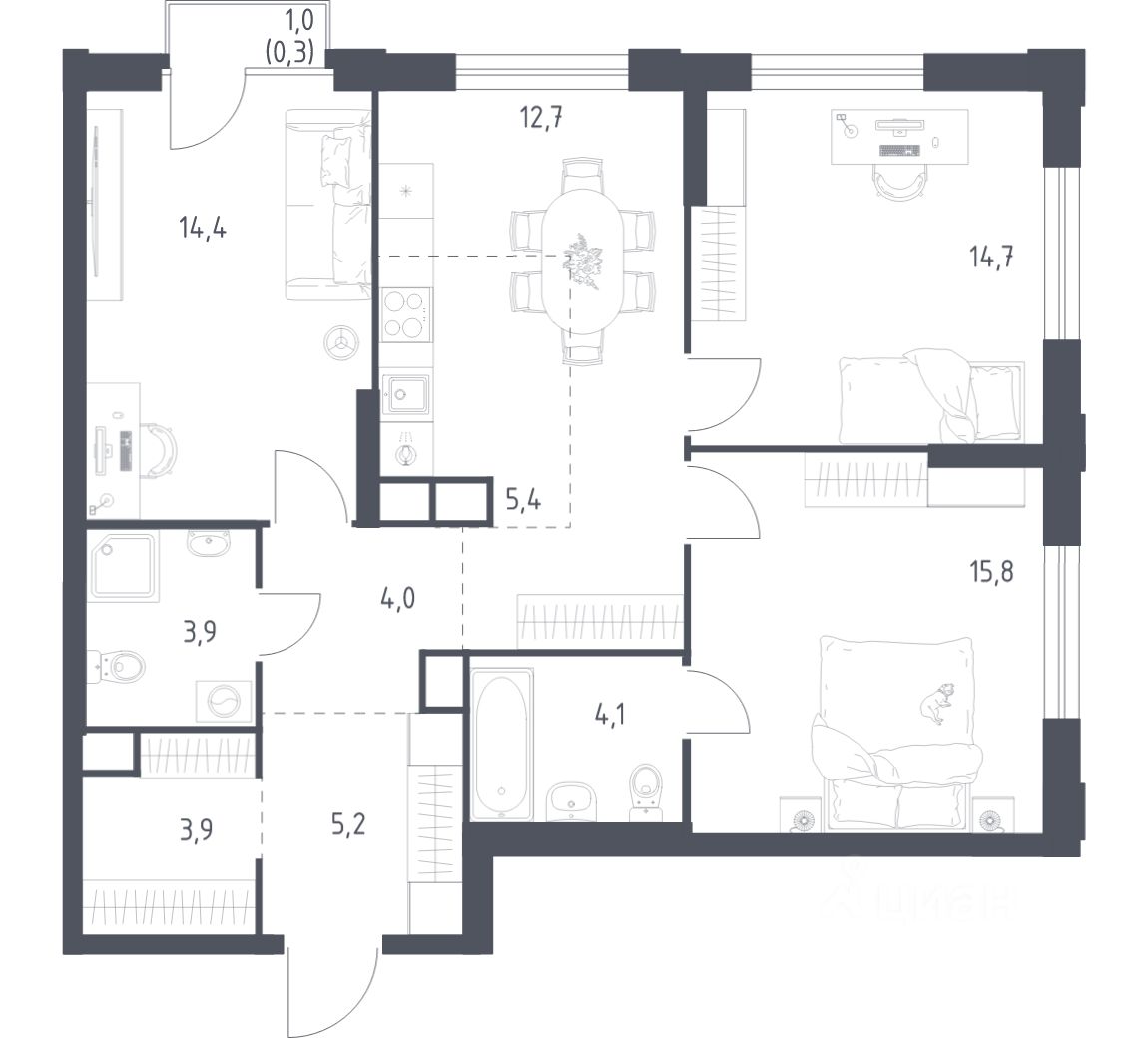 Цена динамическая и может отличаться, уточняйте актуальность у застройщика.