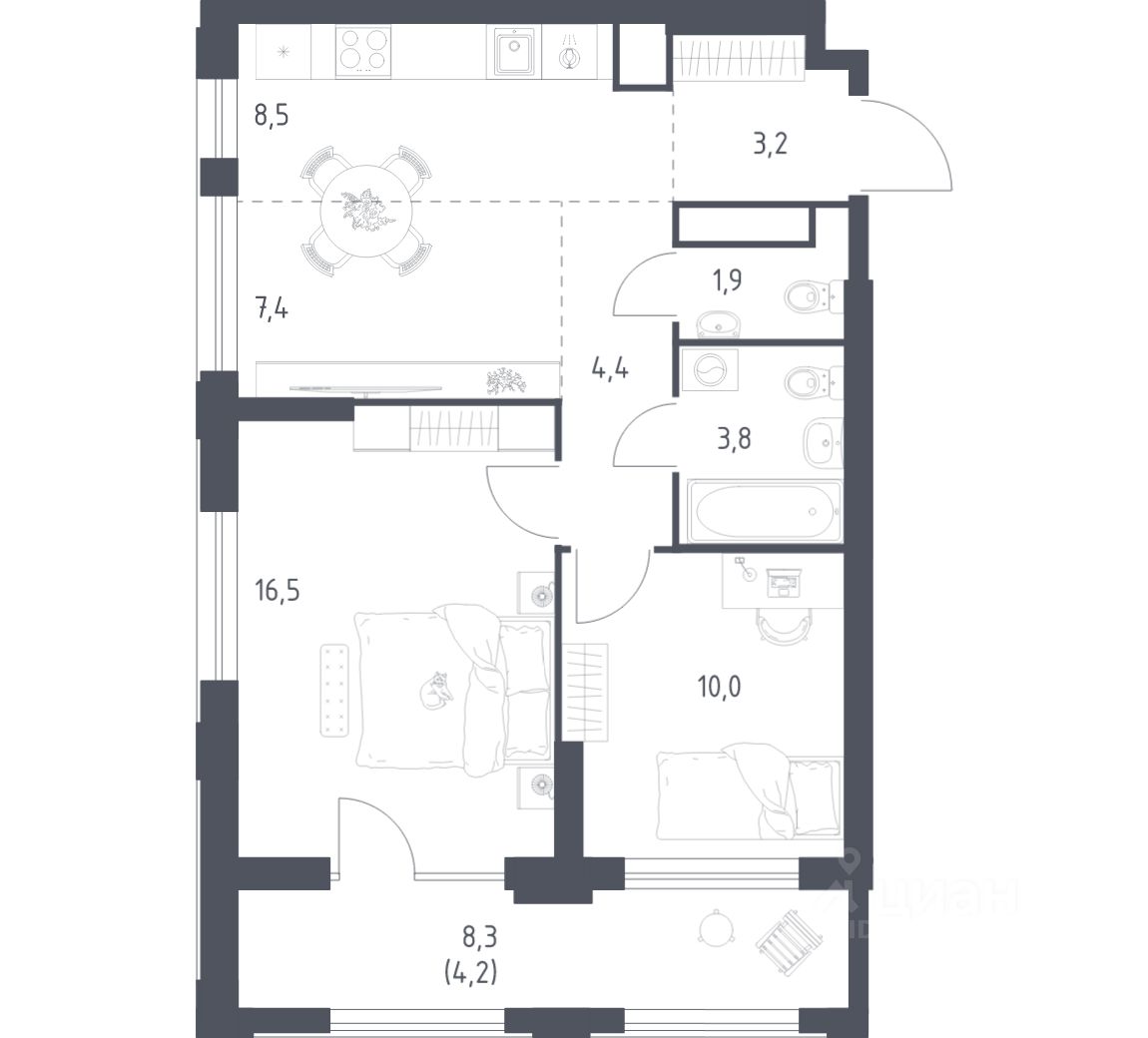 Строим кварталы для жизни с заботой о будущем. Предлагается 2-комнатная квартира комфорт-класса площадью 59.9 кв.м в корпусе 2КВ на 6-м этаже, в жилом комплексе ''Квартал Ауруум''.
