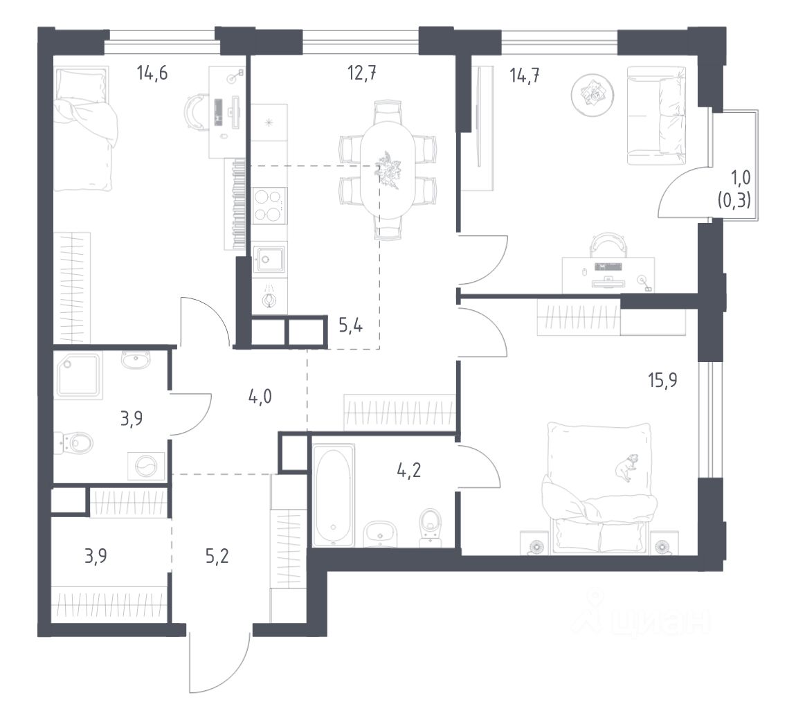 Строим кварталы для жизни с заботой о будущем. Предлагается 3-комнатная квартира комфорт-класса площадью 84.8 кв.м в корпусе 2КВ на 8-м этаже, в жилом комплексе ''Квартал Ауруум''.