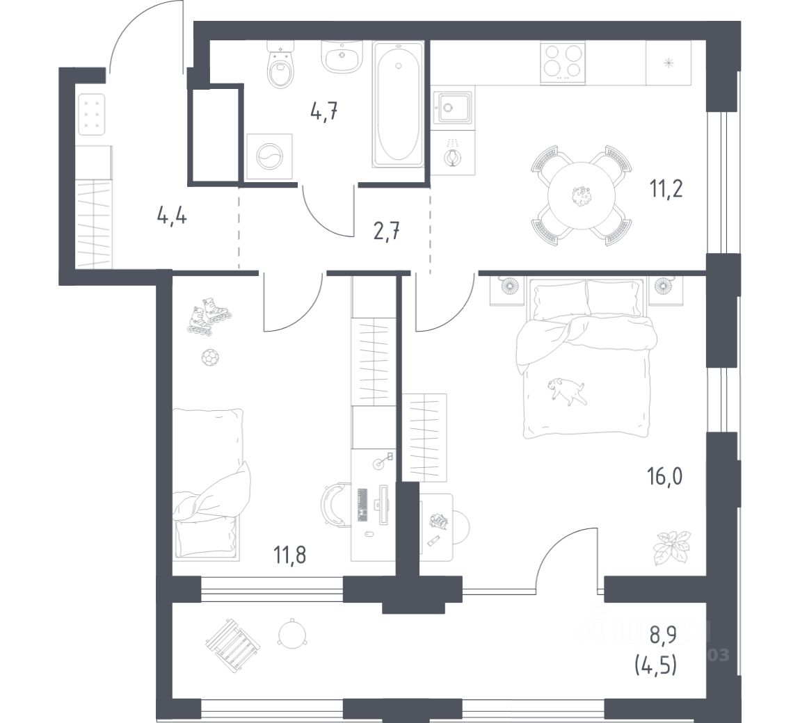 Строим кварталы для жизни с заботой о будущем. Предлагается 2-комнатная квартира комфорт-класса площадью 55.3 кв.м в корпусе 2КВ на 13-м этаже, в жилом комплексе ''Квартал Ауруум''.