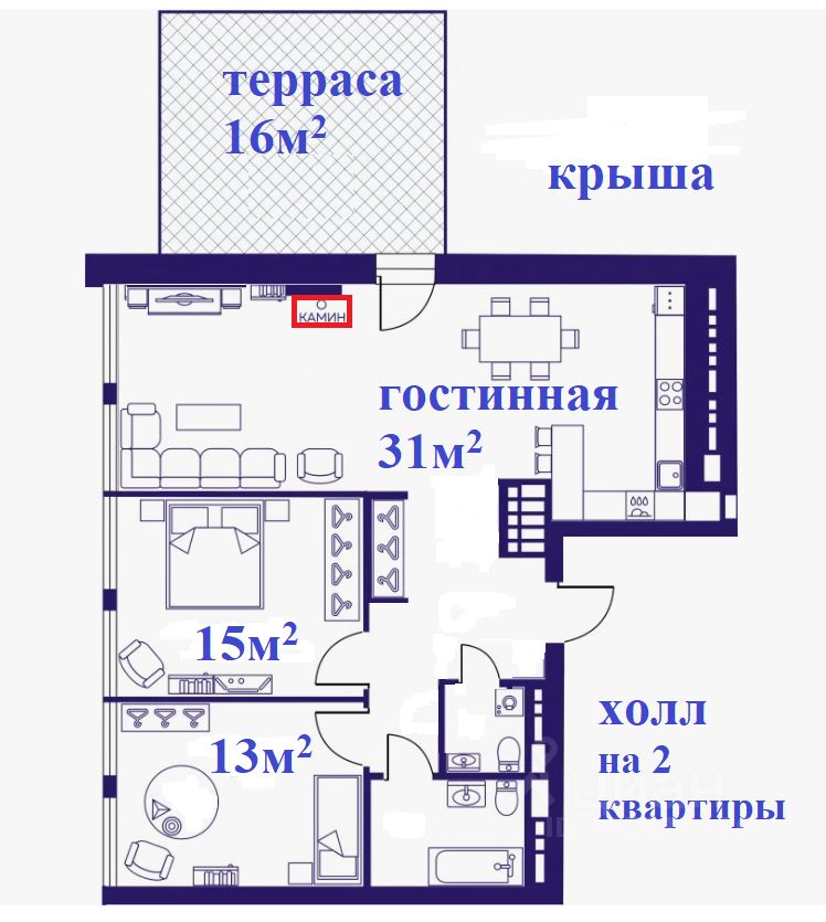 Живи в квартире с террасой и камином,