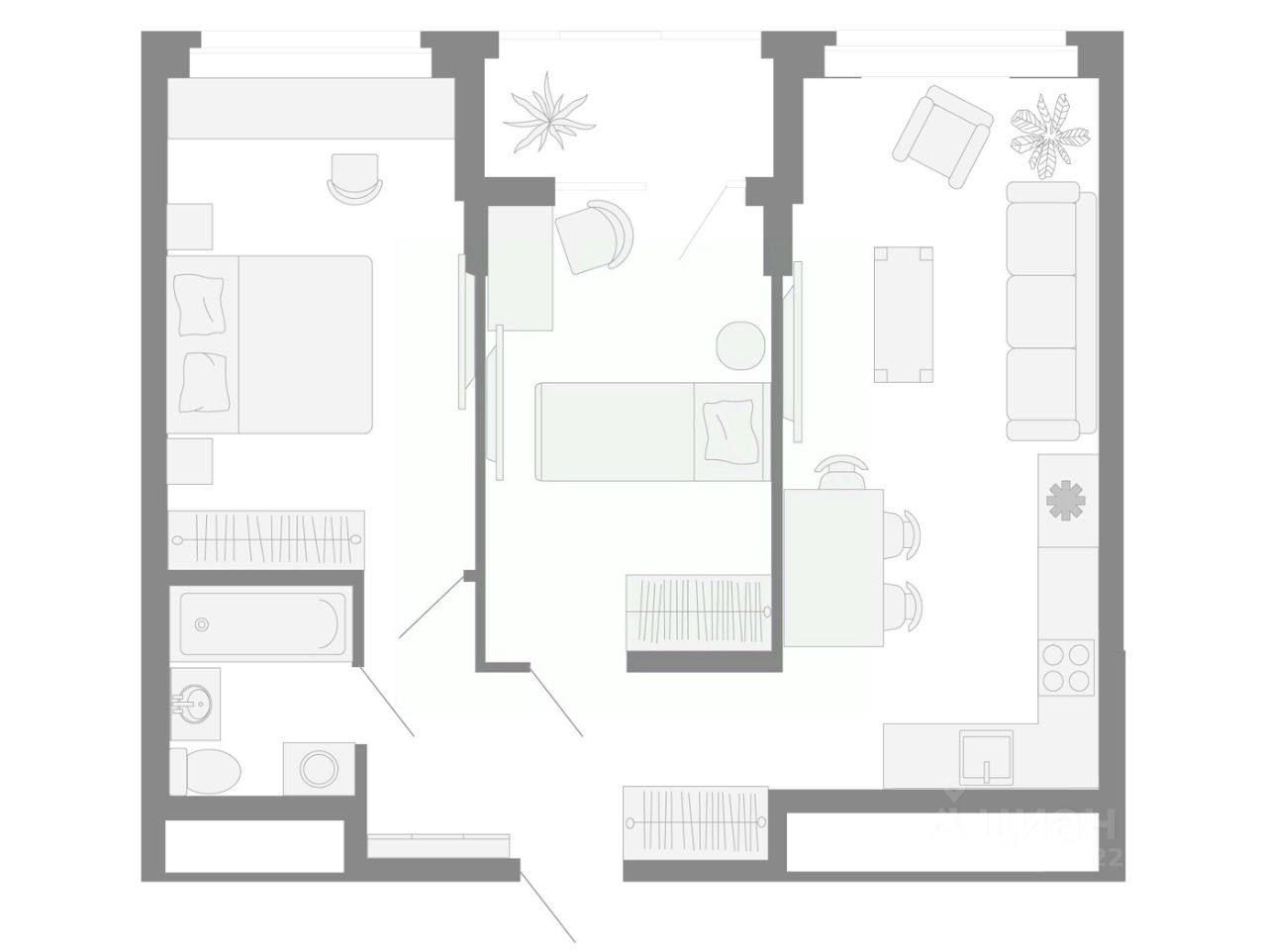 Общая площадь55,5 м2