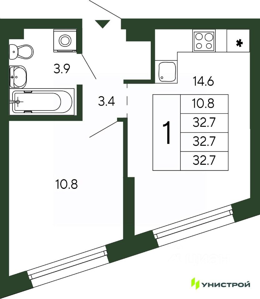 Общая площадь32,7 м2