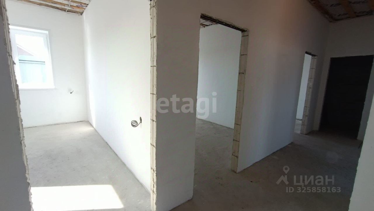 В доме большая прихожая, 2 санузла (совмещенный санузел с ванной и отдельный туалет с раковиной), 3 полноценные спальни, огромная гостиная с кухней и выходом на улицу, где можно построить террасу. Рядом со входом отдельное помещение под котельную.