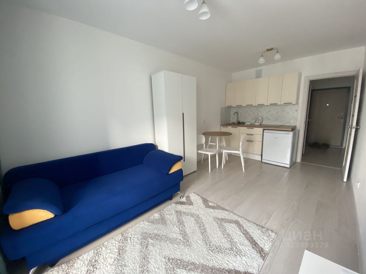 Объект N 196718. Сдается светлая уютная студия на длительный срок. Вся мебель и техника на фото остается. Без животных. Транспортная развязка в шаговой доступности. Около дома магазины и пункты выдачи, детский сад, школа.