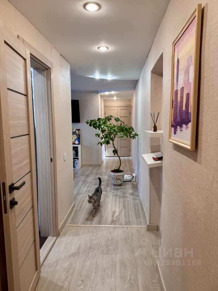 Добрый день! Продам квартиру с прекрасной (узаконенной) перепланировкой. Кухня объединена с гостиной в общее пространство 30 м2. Две спальни 11,5 и 9,5 м2. Дом после капитального ремонта в 2020 году. Заменена вся проводка в доме, крыша, обновлен фасад самого здания. В 22 году сделали капитальный ремонт в квартире: заменено все. Что именно? Электро проводка: медная, в каждой жилой комнате по 10-12 розеток, на кухне 20. Удлинители нигде не используются. Все окна заменены на утепленные. Входная дверь новая, крепкая. Межкомнатные двери эко шпон Полностью переложили полы (вместе с основанием). В зале и жилых комнатах хороший ламинат. В прихожей и на кухне кварц винил.