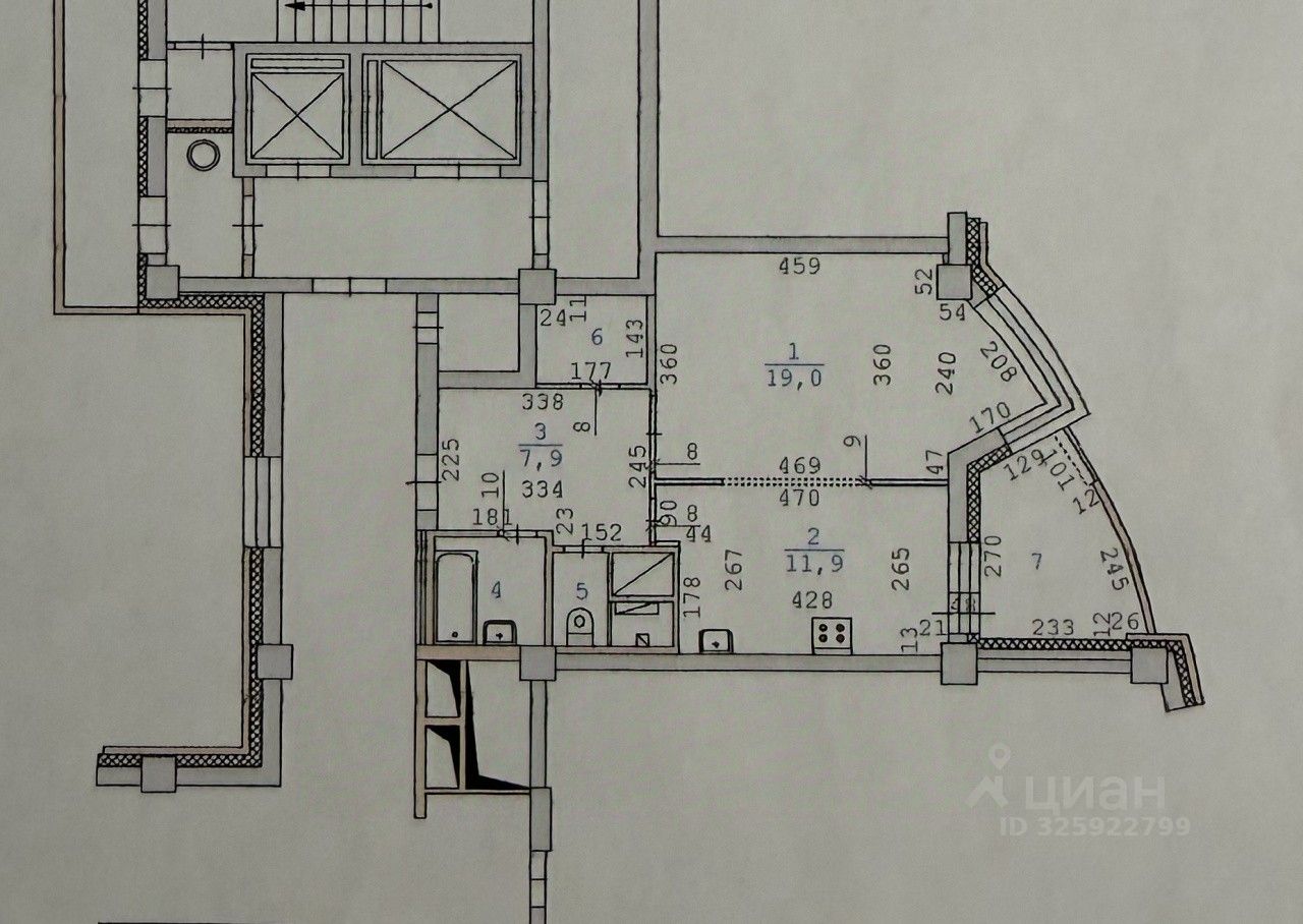 Планировки квартиры: просторная кухня 12 кв.м. с выходом на роскошную лоджию, которую можно обустроить на свое усмотрение, и комната 19 кв. м., раздельный саузел, вместительный коридор и гардеробная комната.