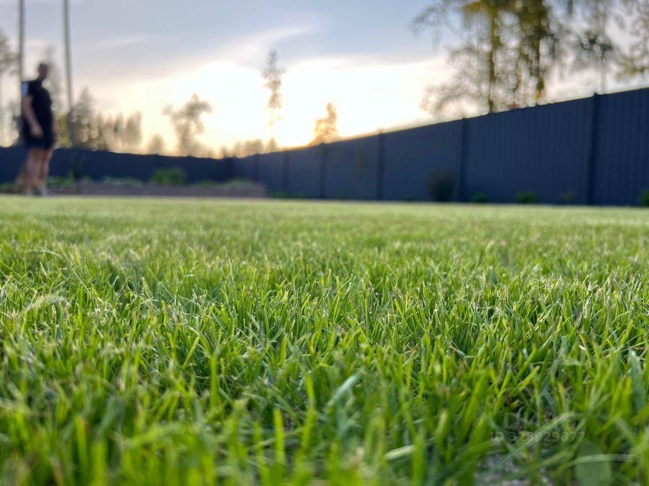 * за домом - ровный ухоженный газон
