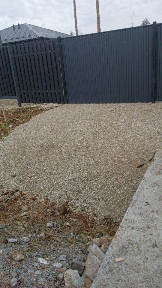 * сделана отсыпка периметра щебнем под геотекстиль