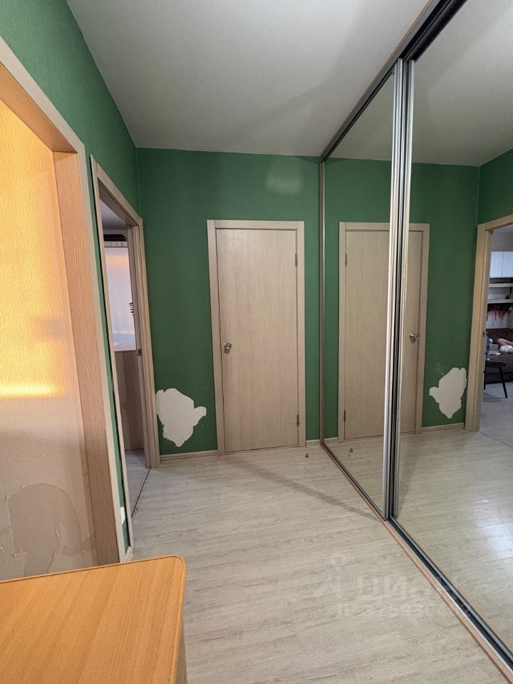 В просторном коридоре остается встроенный шкаф-купе. Квартира продается без мебели.