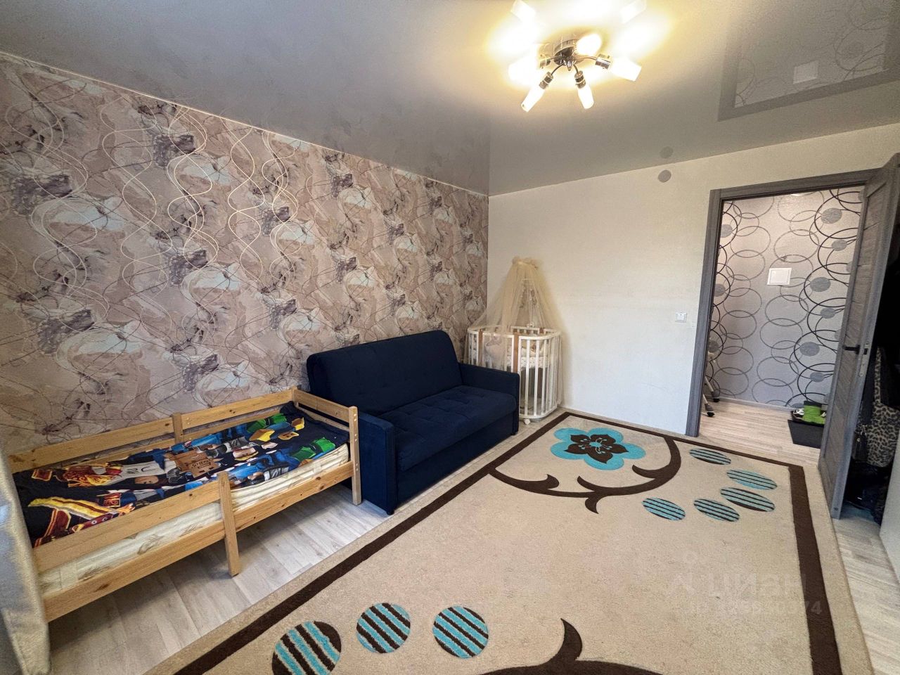 Квартира с современным ремонтом: - Ламинат на полу - Обои на стенах - Натяжной потолок - Тёплый пол в ванной - Душевая кабина - Бойлер на 100 литров