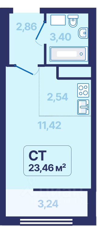 Общая площадь23,46 м2