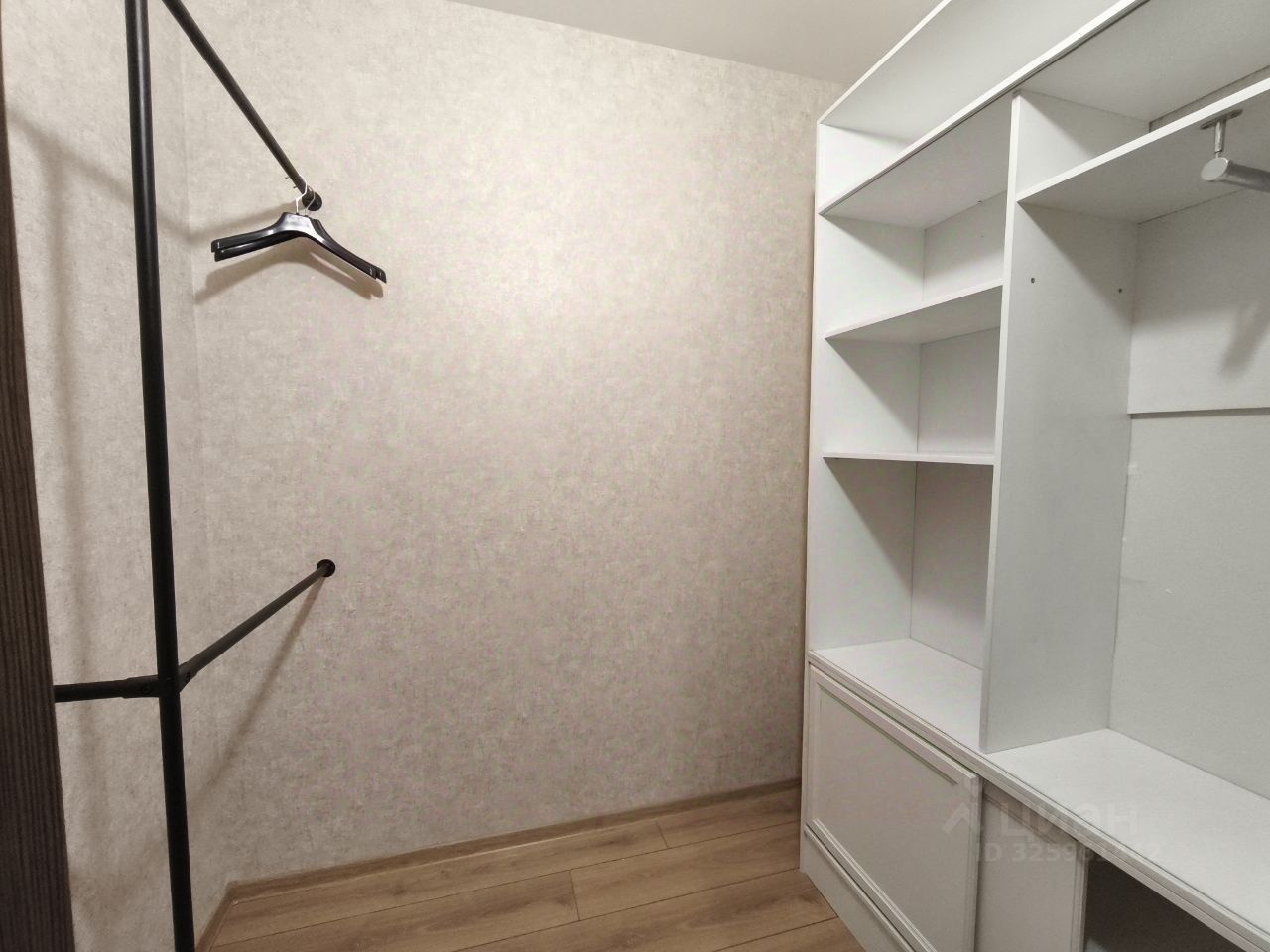 Имеется вместительная гардеробная комната, за счёт чего в комнате больше свободного пространства.