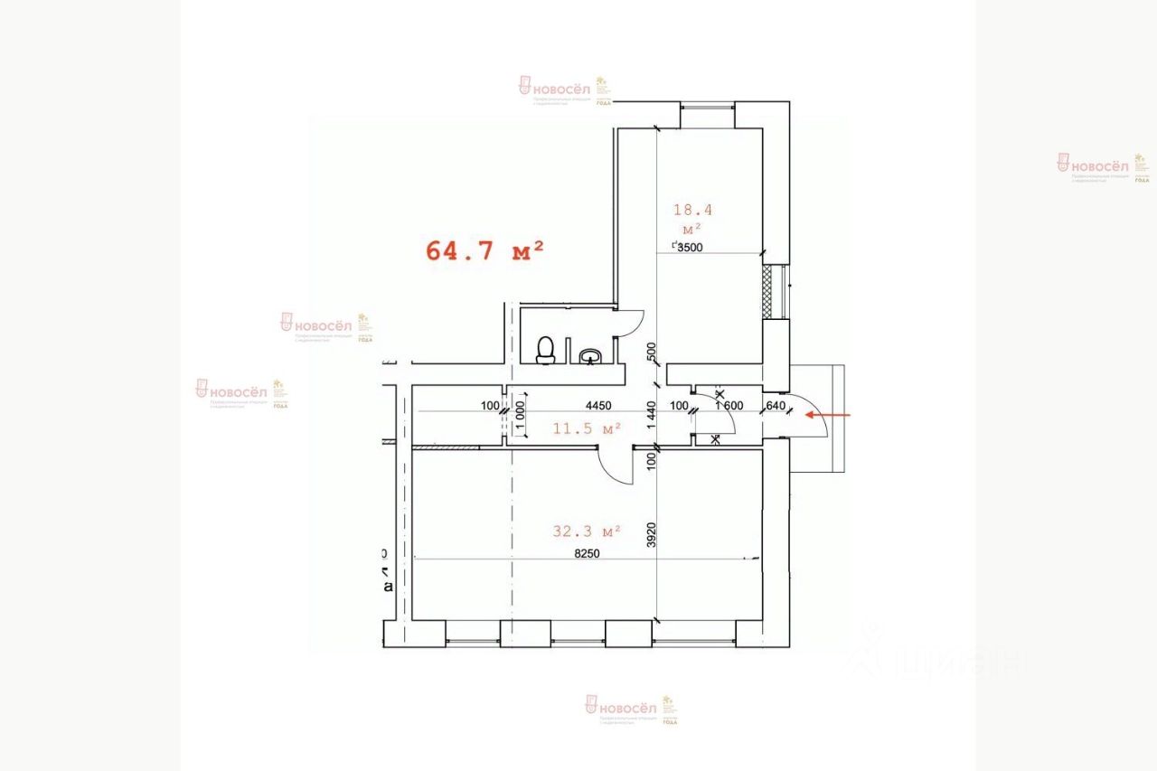 Общая площадь64,7 м2