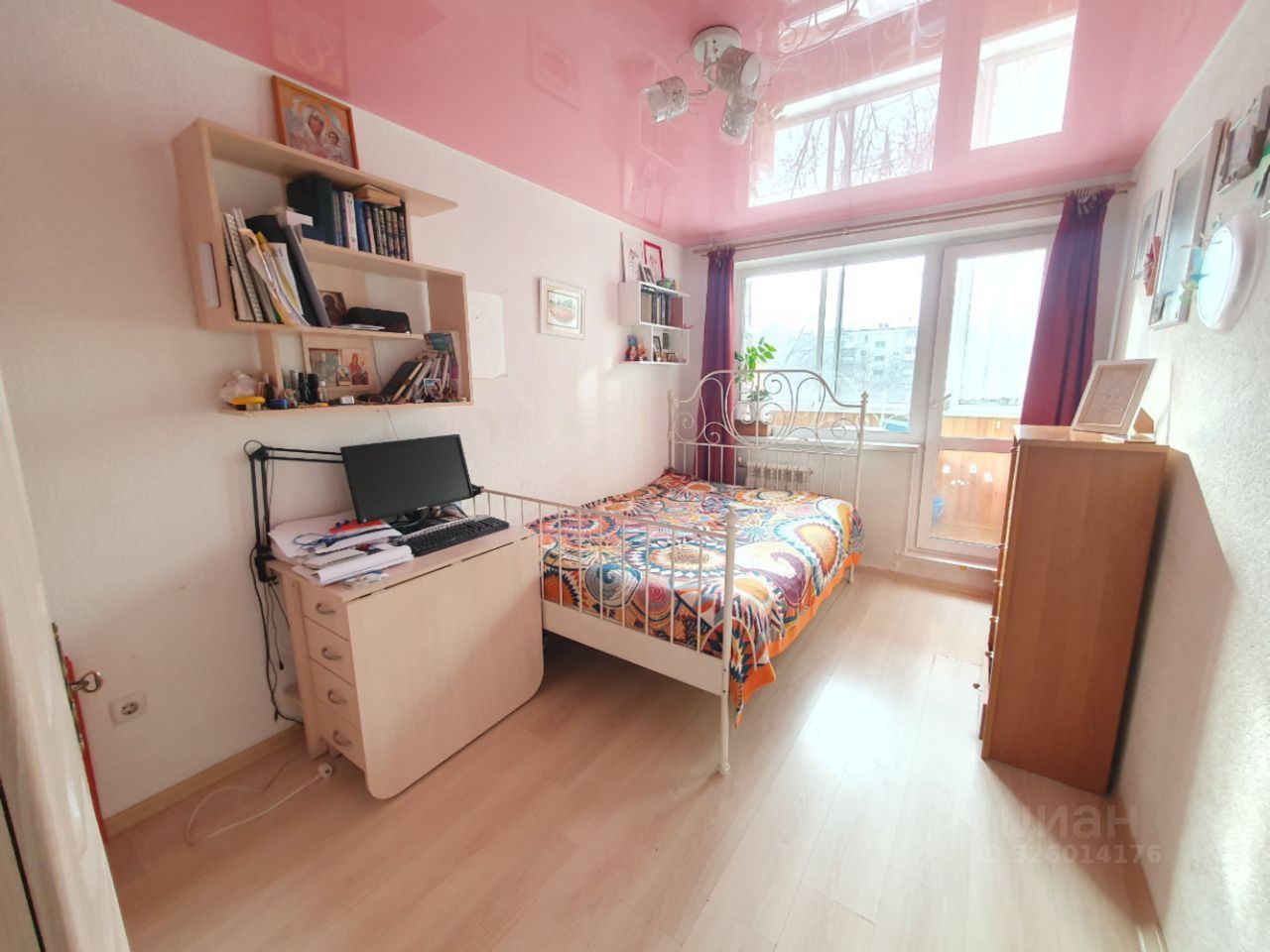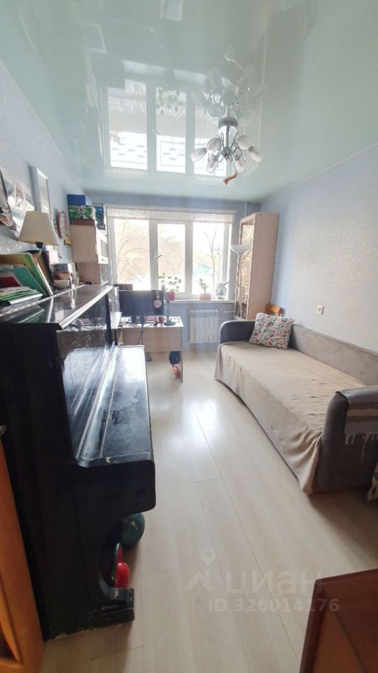 Расположена на 2 этаже, окна выходят на разные стороны во двор (Юг) и на школьный стадион (Север).