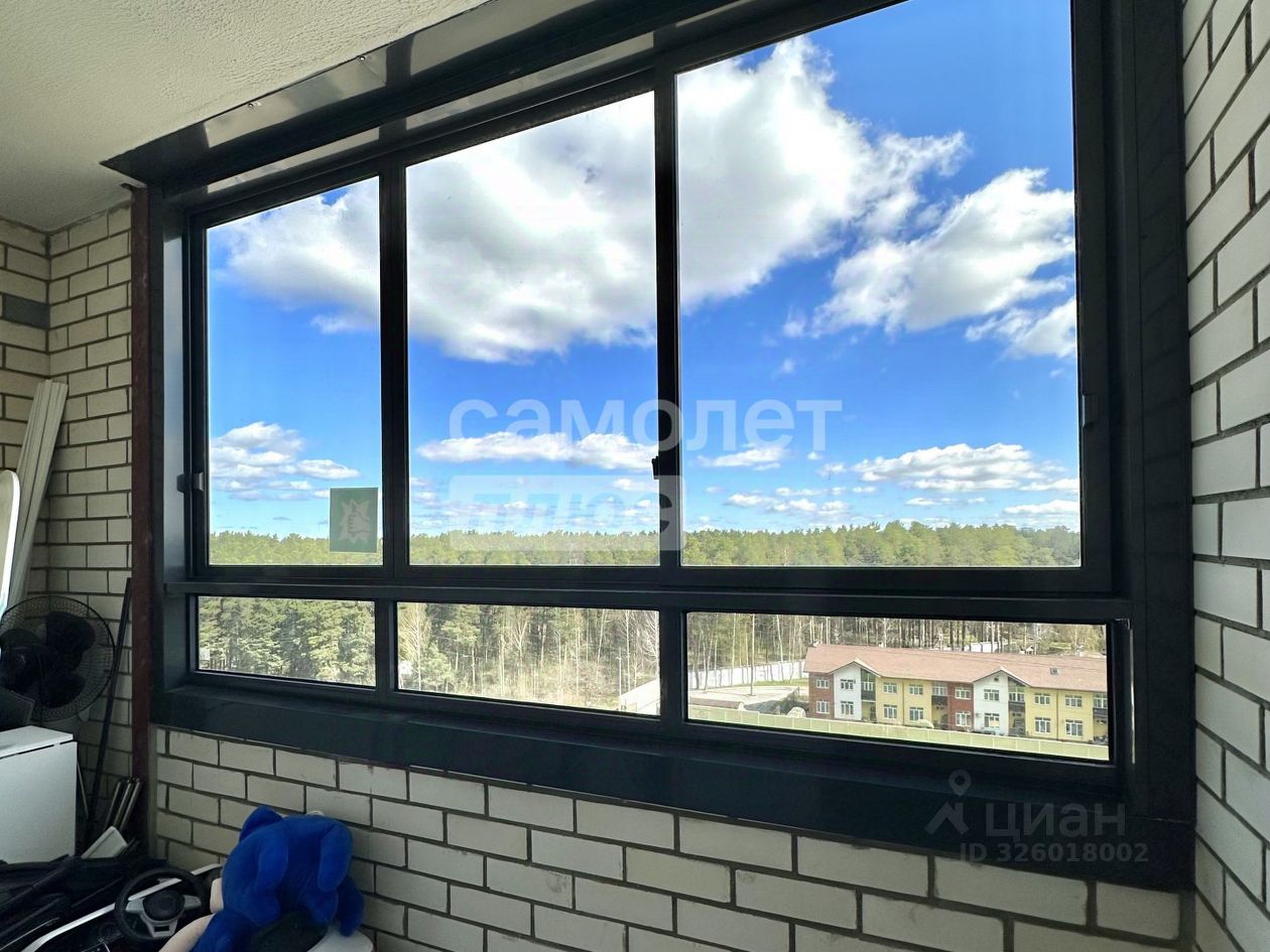 Квартира расположена на видовом 9 этаже 17-этажного монолитно-кирпичного дома. Окна выходят на улицу и юго-западный лесопарк.