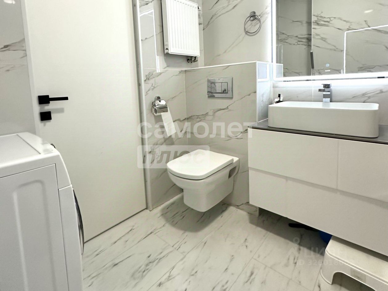 Весь пол в квартире выложен кварц-винилом в один контур Двери скрытого монтажа Керамогранит в санузлах Две инсталляции Установлен кран под питьевую воду Встроенный шкаф в коридоре Продуманное освещение и эргономика пространства
