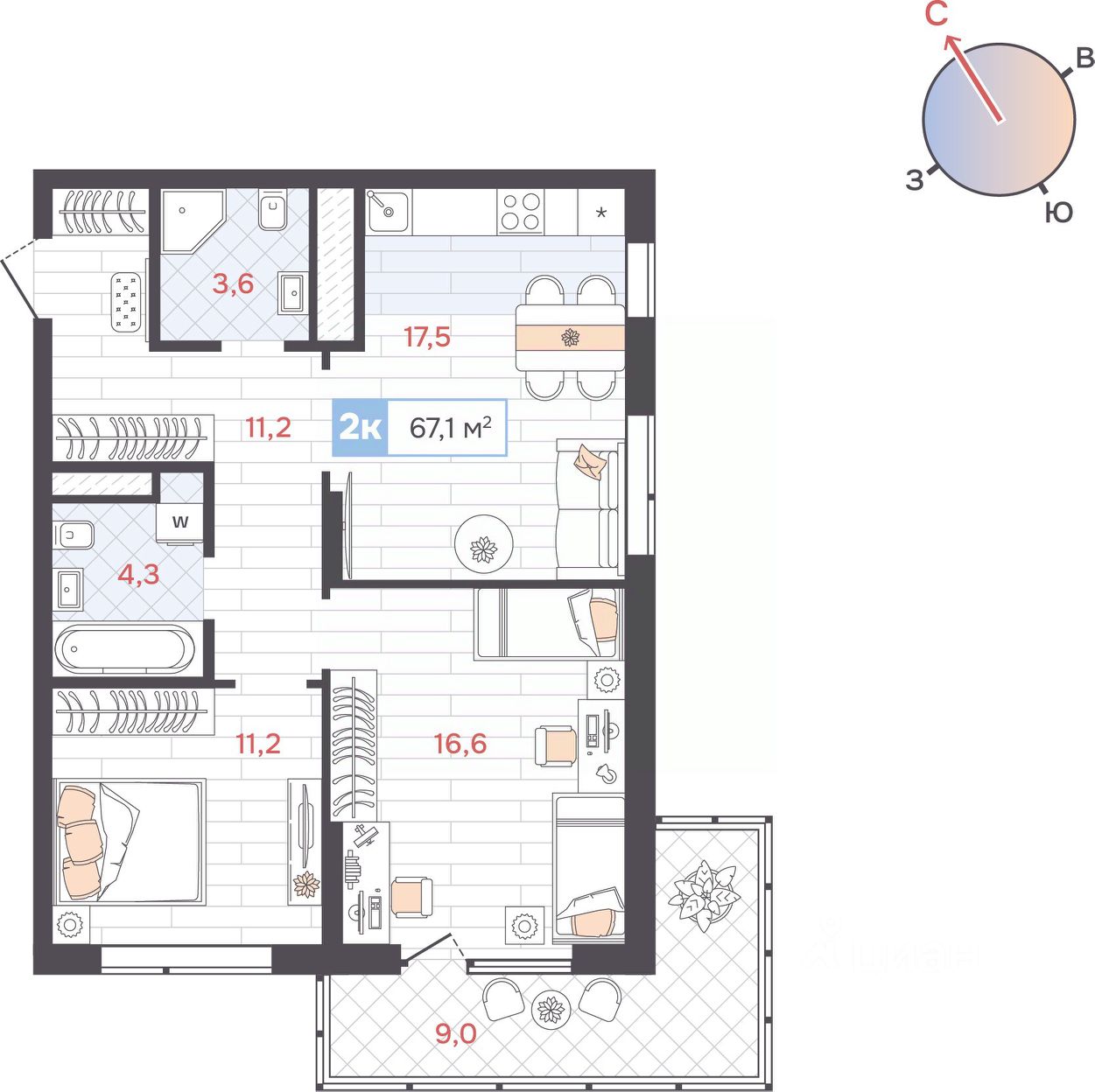 Общая площадь67,1 м2