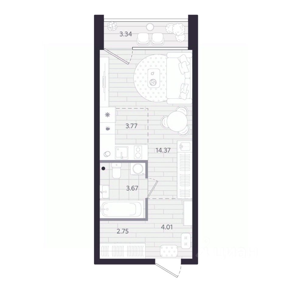 Продаётся студия в строящемся доме (Дом 1.1), срок сдачи: II-кв. 2028, общей площадью 30.24 кв.м., на 12 этаже. Новый жилой комплекс ''Тетро'' от застройщика ''Люди'' расположен по адресу: г. Екатеринбург, улица Героев России.