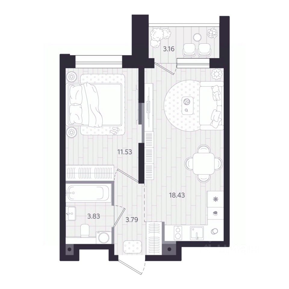 Продаётся 1-комнатная квартира в строящемся доме (Дом 1.1), срок сдачи: II-кв. 2028, общей площадью 39.16 кв.м., на 3 этаже. Новый жилой комплекс ''Тетро'' от застройщика ''Люди'' расположен по адресу: г. Екатеринбург, улица Героев России.