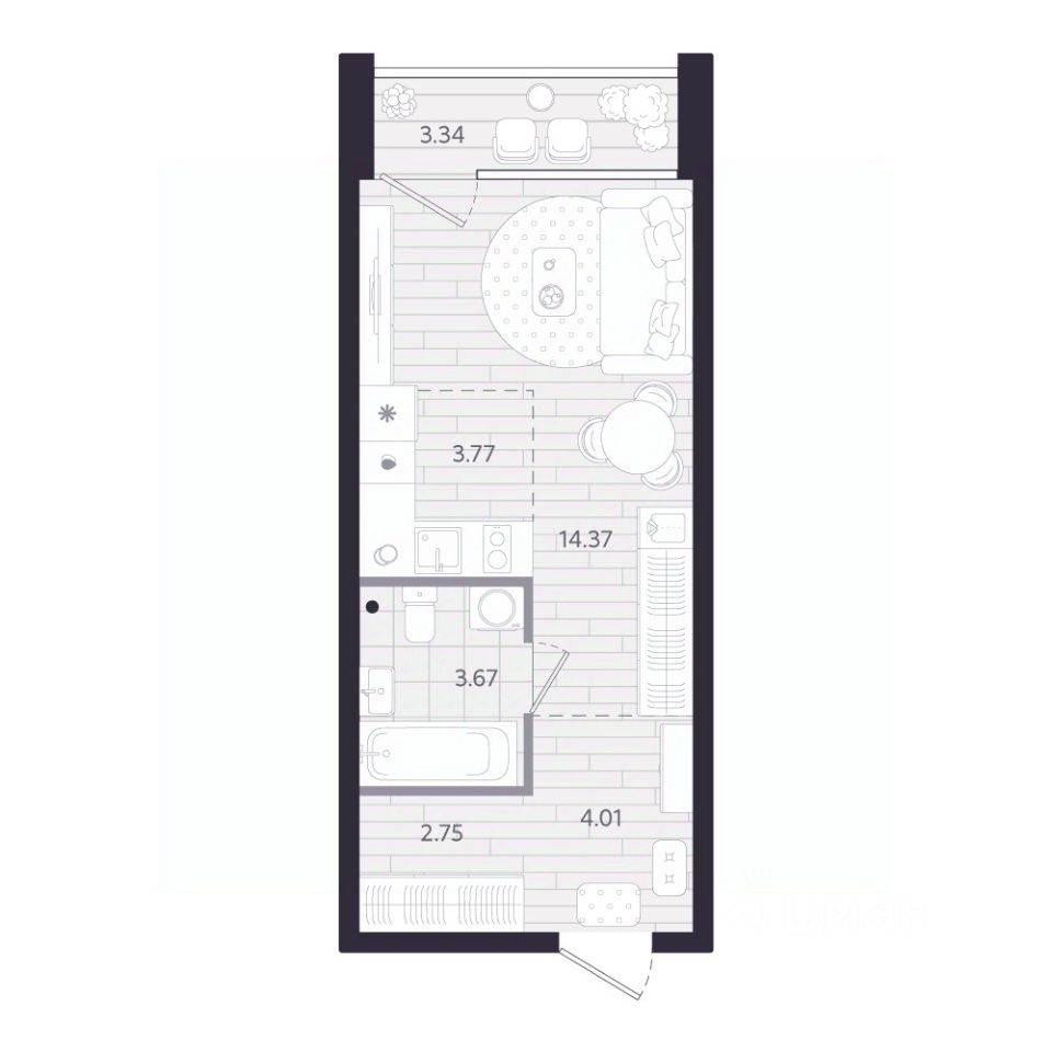 Продаётся студия в строящемся доме (Дом 1.1), срок сдачи: II-кв. 2028, общей площадью 30.24 кв.м., на 11 этаже. Новый жилой комплекс ''Тетро'' от застройщика ''Люди'' расположен по адресу: г. Екатеринбург, улица Героев России.