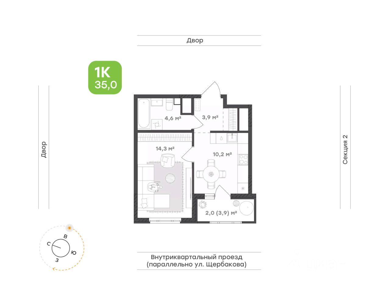 продам 1-к, Щербакова, 138 стр.6 282 300 ₽