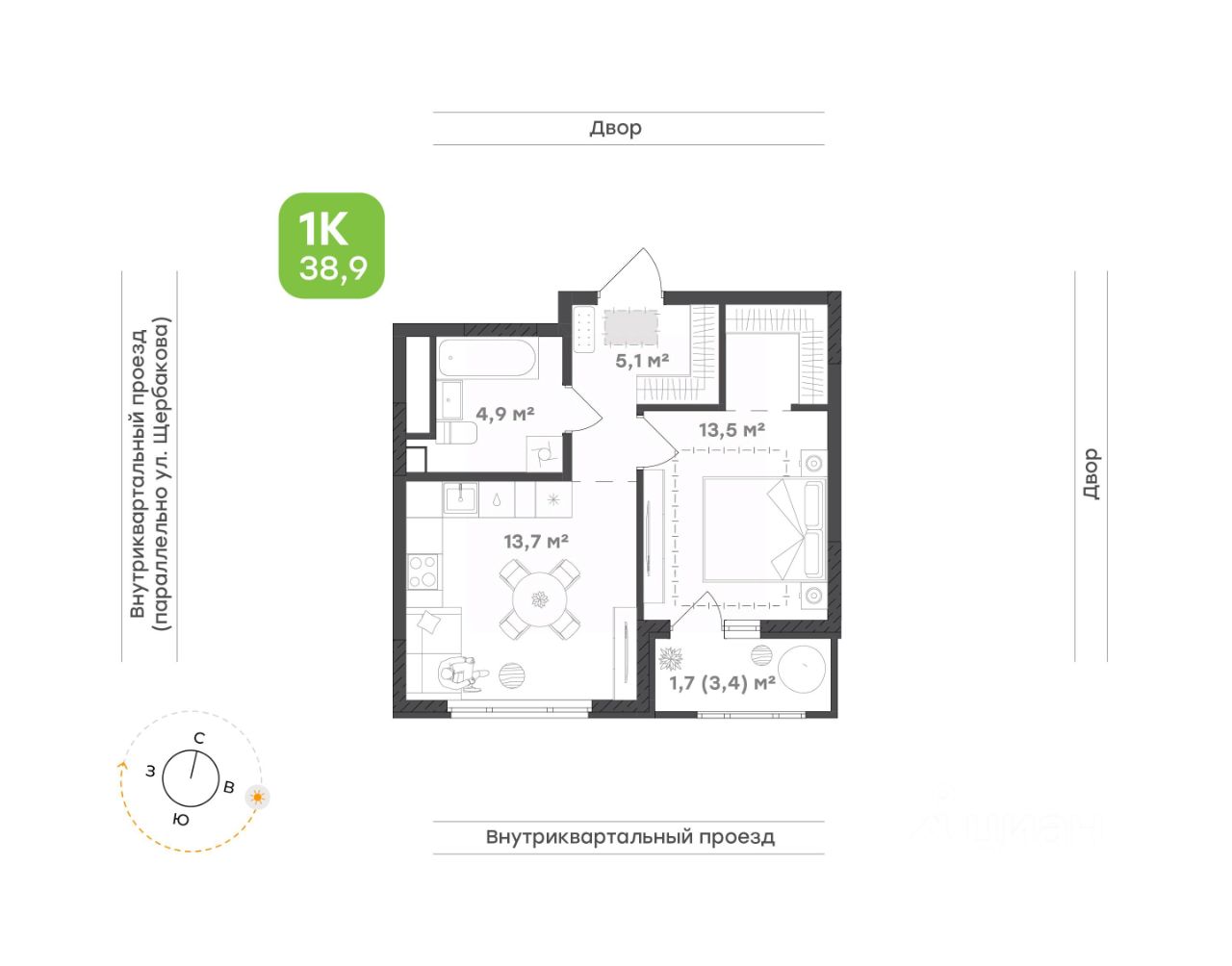 продам 1-к, Щербакова, 138 стр.6 718 200 ₽