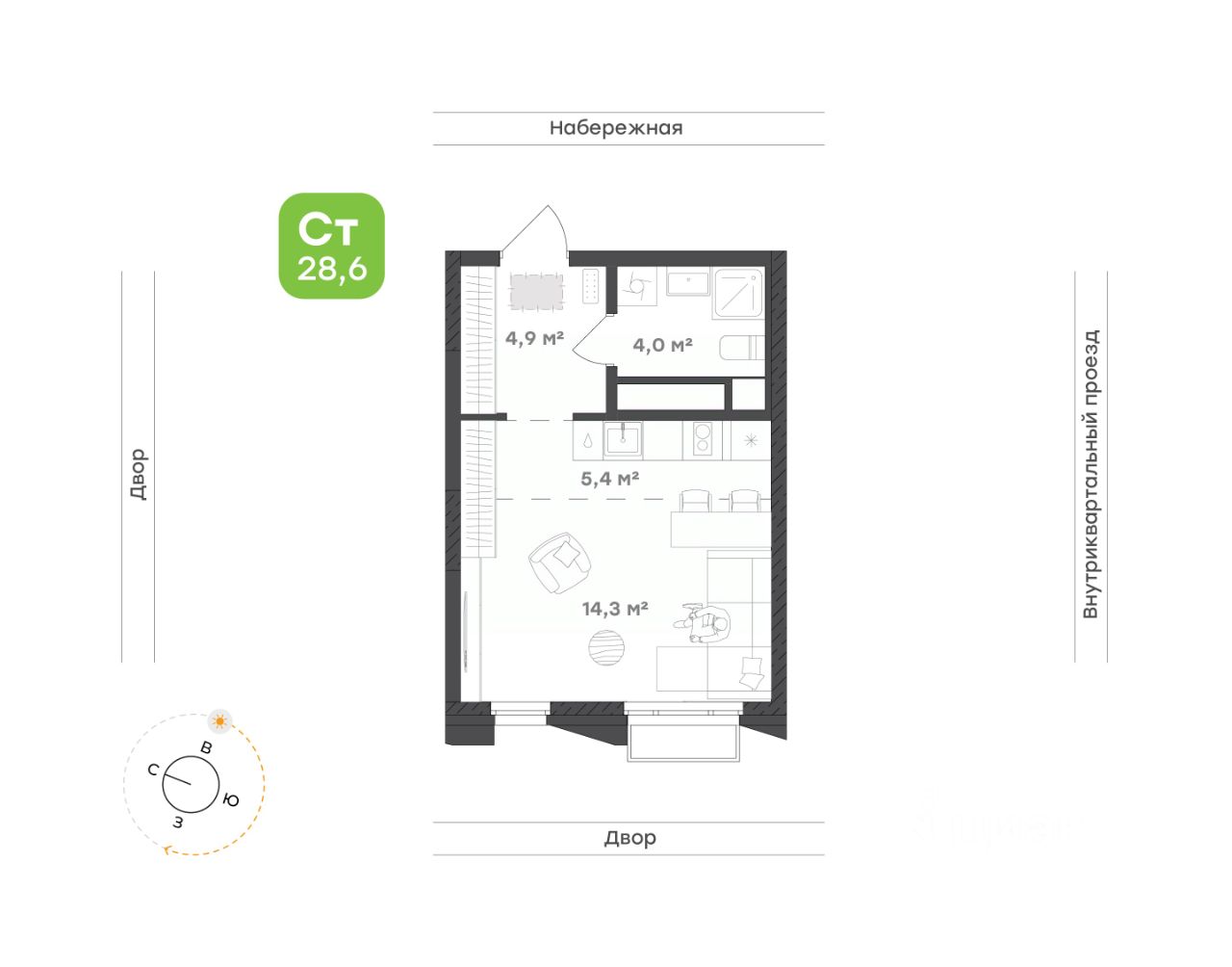 Зона гостиной и спальни позволяет создать личный уголок для спокойного сна и тёплых бесед с гостями