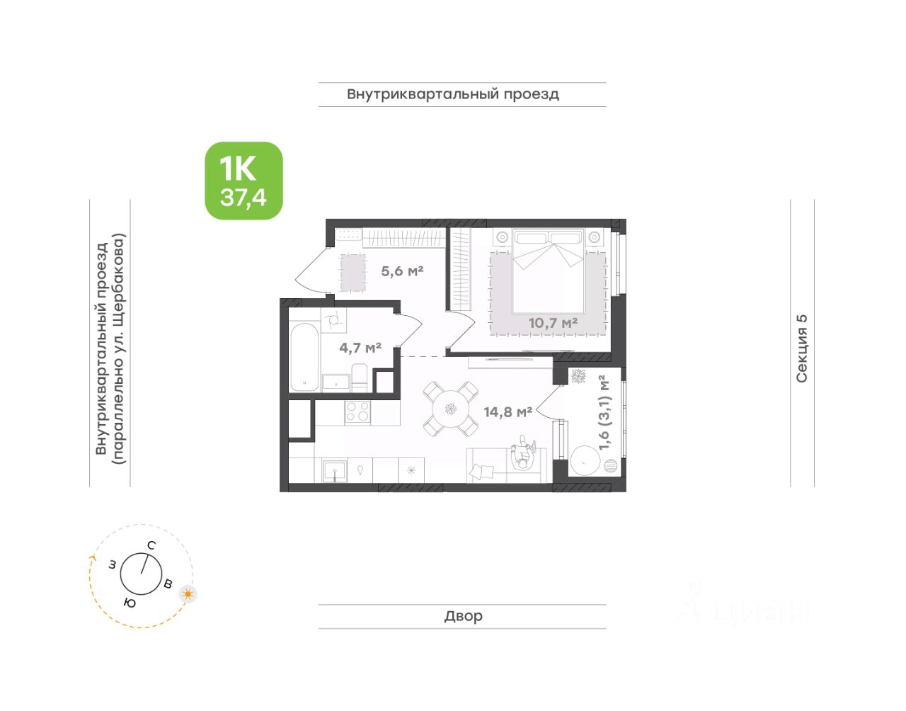 Просторная кухня с выходом на лоджию, в которой поместится и функциональная зона для готовки, и обеденный стол, и мягкий уголок. Уютное пространство для тёплых ужинов, душевных разговоров и весёлых встреч с друзьями