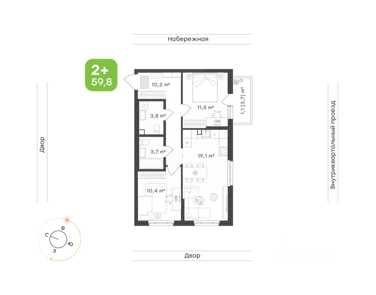 Детская комната — светлая, уютная и функциональная. Достаточно места для игр, учёбы и отдыха, чтобы ребёнок чувствовал себя комфортно