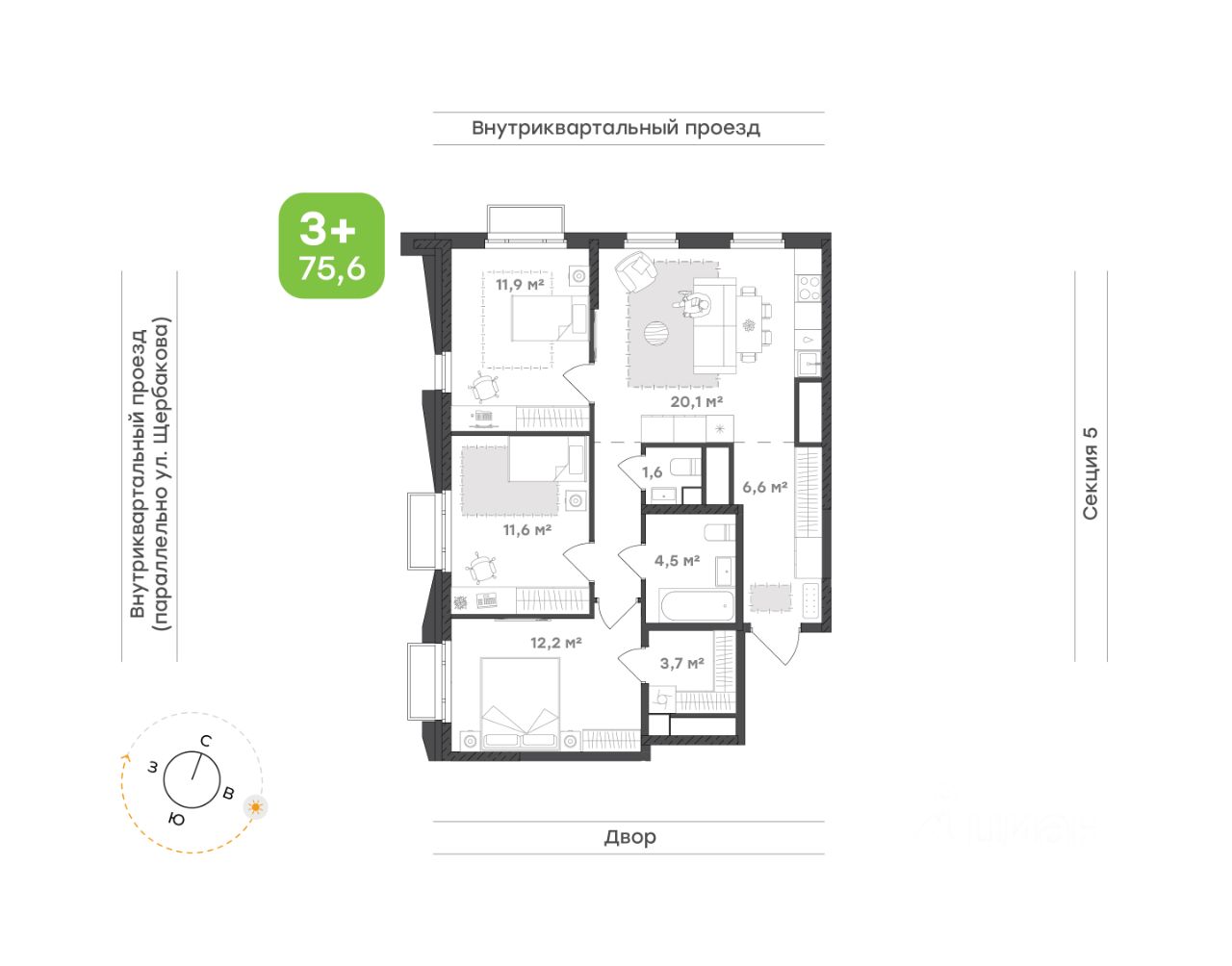 Детская зона включает две просторные комнаты, каждая с удобными местами для хранения. Здесь можно организовать пространство для сна, учёбы и игр, не перегружая комнаты лишними деталями