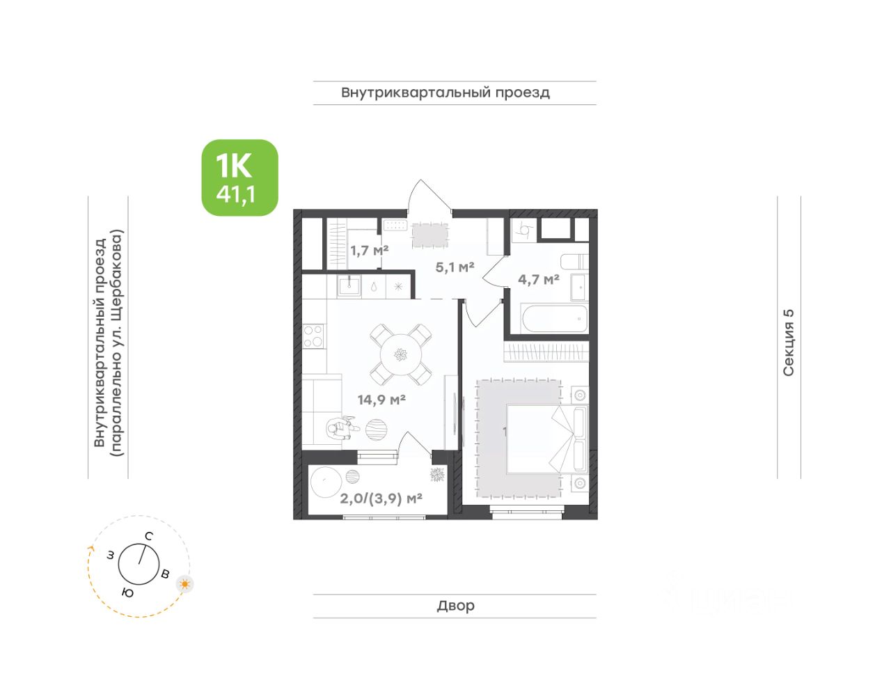 Спальня — место для отдыха и восстановления. Пространство продумано так, чтобы здесь было комфортно и уютно, а выделенная зона под шкаф поможет организовать хранение без перегруженности интерьера