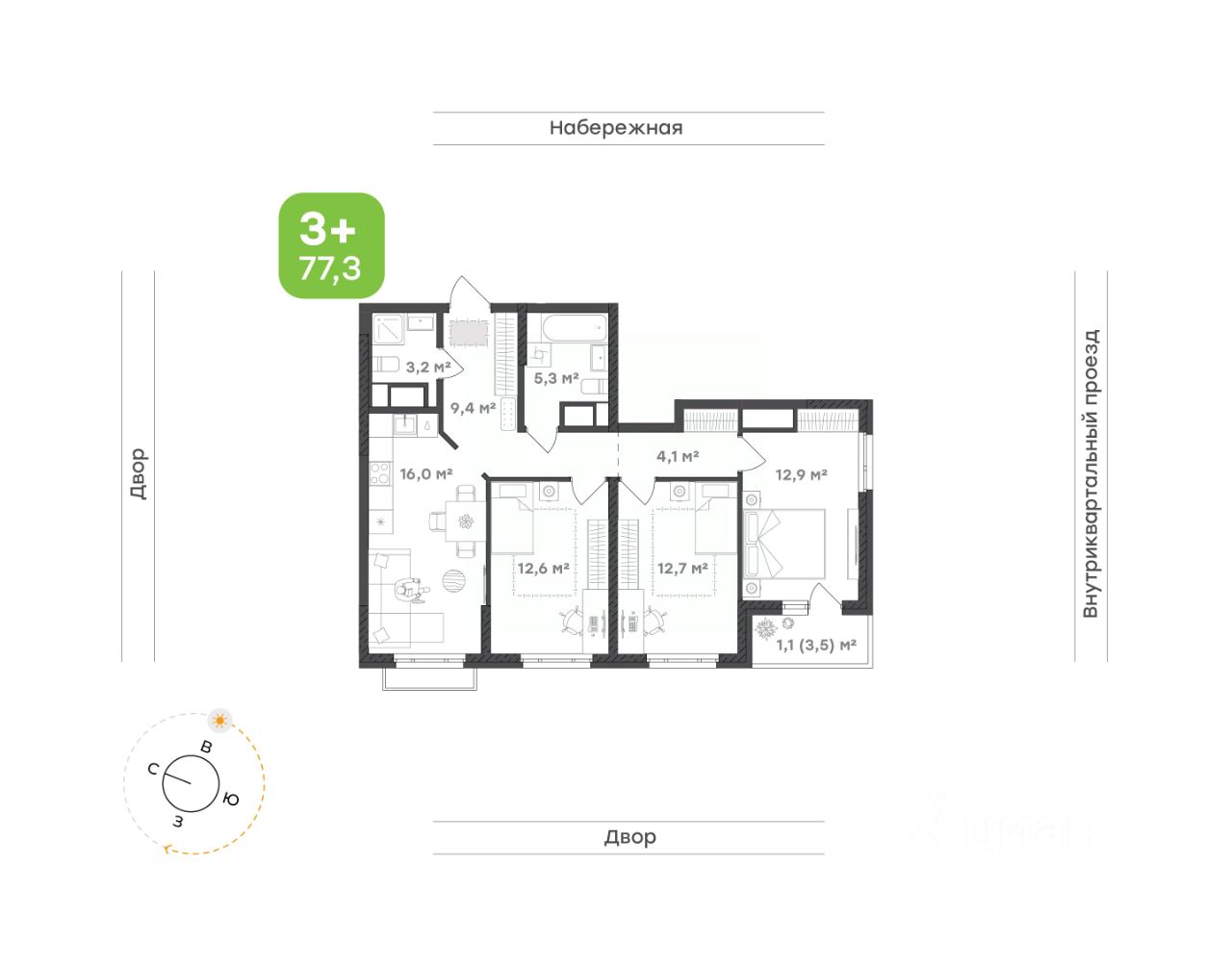 Счастье в каждом квадратном метре Спальня — уединённое пространство с удобным местом для хранения и выходом на лоджию. Здесь можно просыпаться с видом на тихий двор, наслаждаясь утренним светом и свежим воздухом Кухня-гостиная — центр квартиры, где удобно собираться всей семьёй по вечерам, устраивать ужины и тёплые посиделки с друзьями. Открытое пространство создаёт ощущение свободы и лёгкости Две спальни подойдут для детей, гостей или рабочего кабинета. Светлые, просторные и уютные — они легко адаптируются под любые задачи Прихожая— вместительная и продуманная. Здесь предусмотрено удобное место для хранения, которое поможет избежать загромождённости и сохранить порядок Два санузла с ванной и выделенным местом под стиральную машину сделает утренние сборы ещё комфортнее, а вечерние расслабления более умиротворяющими