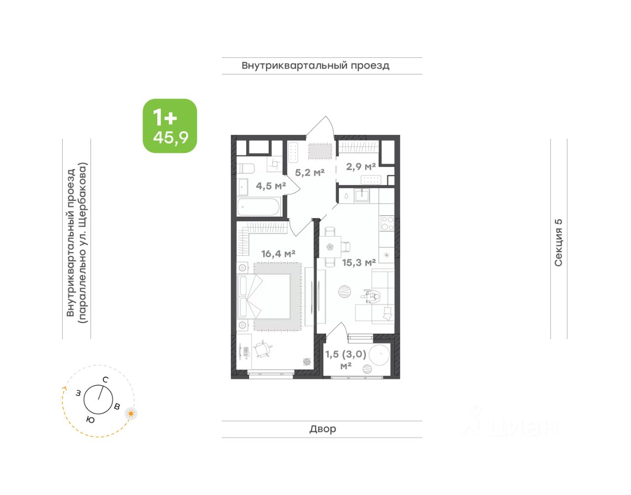 Функциональный санузел позволяет разместить всё необходимое для утреннего бодрящего душа или расслабляющей вечерней ванны