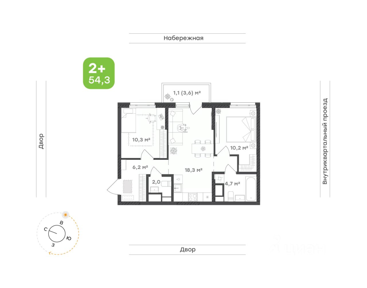 Светлая и просторная кухня-гостиная с выходом на балкон — место, где утром приятно начинать день за чашкой кофе, а вечером собираться с друзьями. Открытая планировка создаёт ощущение свободы, а зона готовки продумана так, чтобы всё было под рукой