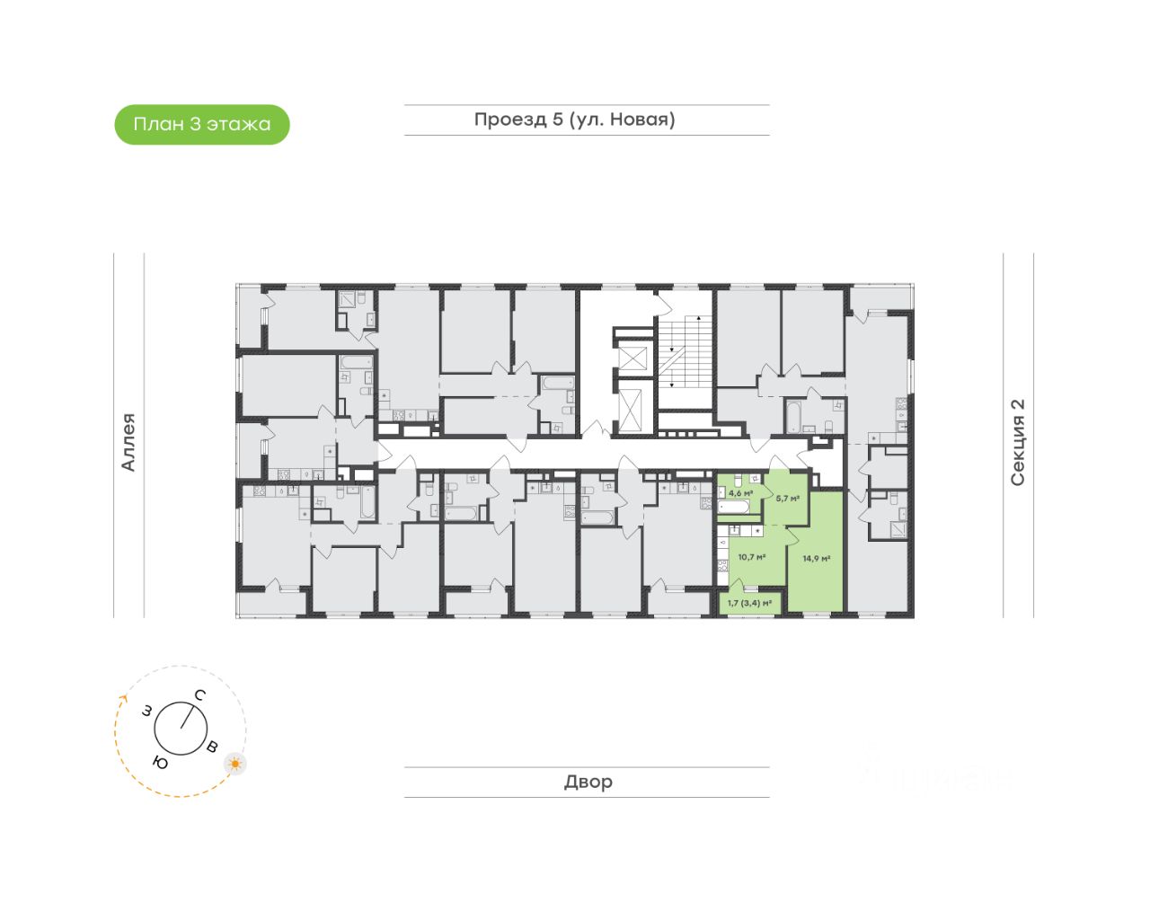 Изолированная комната 14,9 м² обеспечивает личное пространство для отдыха и восстановления. Здесь достаточно места для большой кровати, системы хранения и рабочего уголка