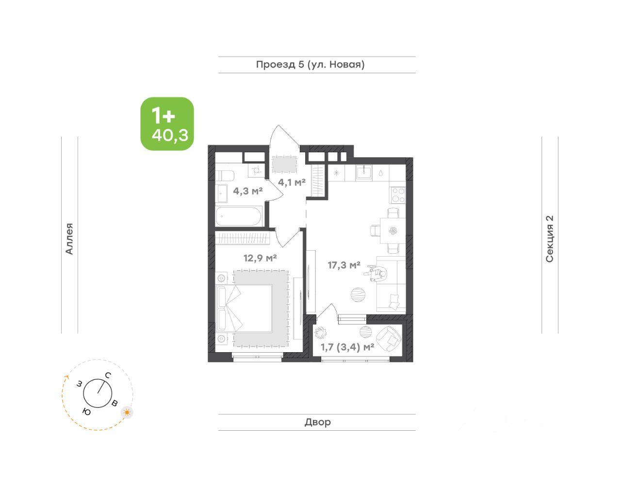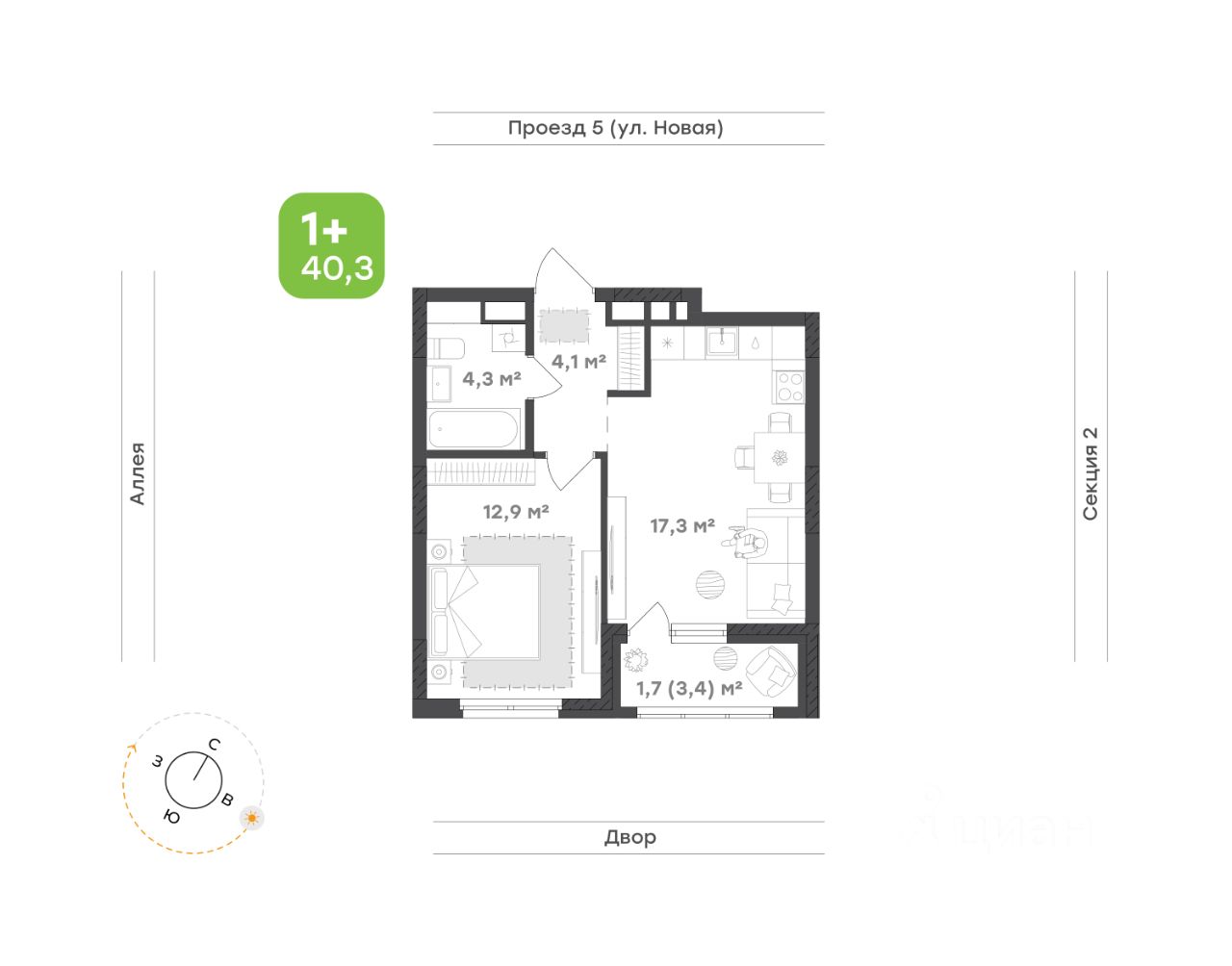 Светлая и просторная кухня-гостиная 17,3 м² — место, где утром приятно начинать день за чашкой кофе, а вечером собираться с друзьями. Открытая планировка создаёт ощущение свободы, а зона готовки продумана так, чтобы всё было под рукой
