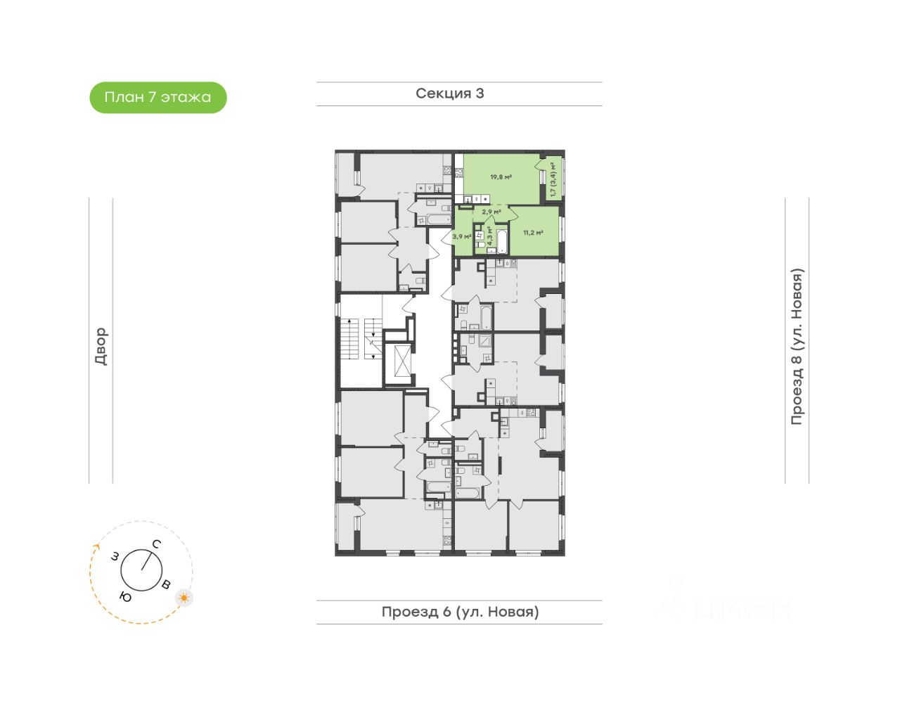 Квартира, которая легко адаптируется под ваш ритм жизни Кухня-гостиная 19,8 м² с выходом на лоджию — сердце квартиры, наполненное светом и уютом. Здесь удобно готовить, принимать гостей или отдыхать после долгого дня С лоджии 3,4 м² открывается живописный вид на город, позволяя наслаждаться им в любое время дня Спальня 11,2 м² — место для отдыха и восстановления. Пространство продумано так, чтобы здесь было комфортно и уютно, а выделенная зона под шкаф поможет организовать хранение без перегруженности интерьера Санузел 4,3 м² — стильный и функциональный. Достаточно места для всей необходимой сантехники, а грамотная планировка делает пространство удобным Прихожая 3,9 м² встречает продуманным местом для хранения.
